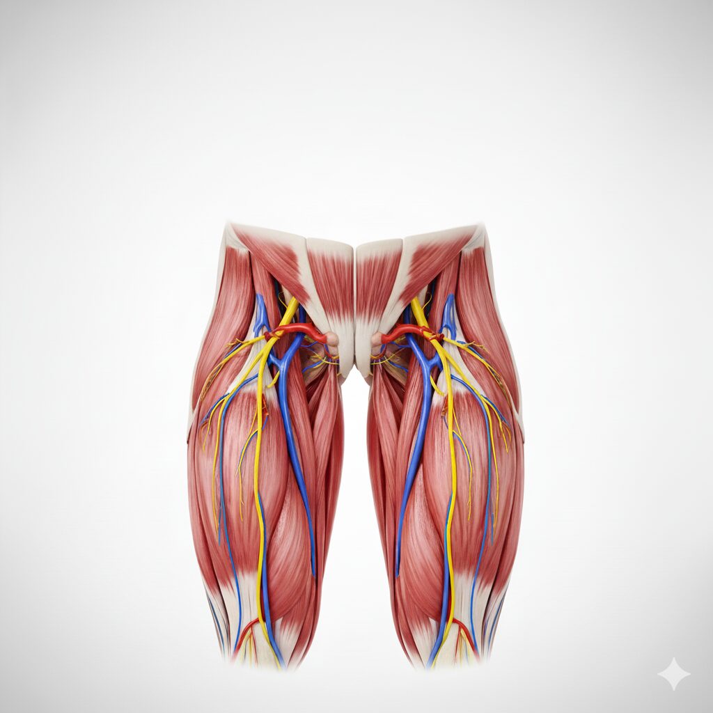 | 内側広筋(Vastus Medialis) | 大腿骨粗線内側唇 | 膝蓋骨を介して脛骨粗面 | 膝伸展、膝蓋骨安定化 |